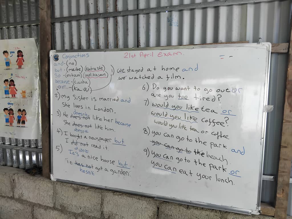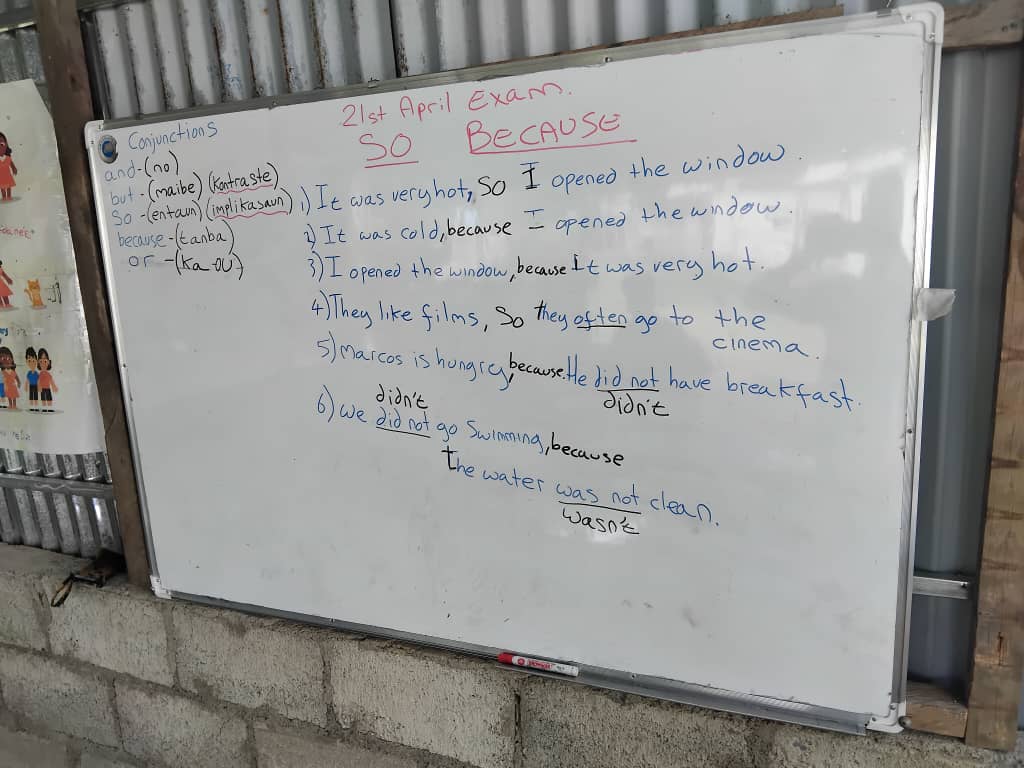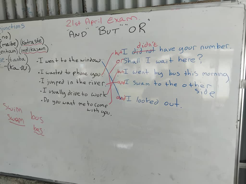 The translations and meanings from Tetun for these conjunctions translate well between the two languages. So this lesson’s main aim was to expose students to new vocabulary.