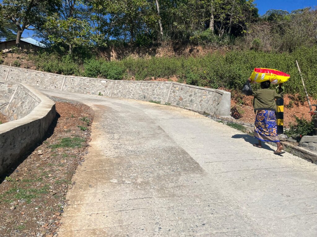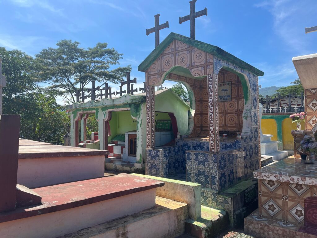 BELOW: Last week was “All Souls” day here in Timor-Leste. It’s a day when the dead are remembered and honored. This is typically done by gathering flowers, getting them blessed at church and then laying the flowers on the graves of family members. This often requires a “pilgrimage” of travel to those graves which are typically at the family home and often in the mountains. Below is a photo of Mana Berta after her flower blessing. Mailys and I took our own pilgrimage walk (7 miles there and 7 miles back) into the mountains to a small chapel I visited last year. We saw lots of family graves and met many people along the way. It was a hard walk but so enjoyable. The Timorese are such friendly people and when you get into the mountains people are even friendlier. On our walk we met an older woman carrying a bag of blessed flowers on her head. We helped her carry the bag up some particularly steep sections of the walk.