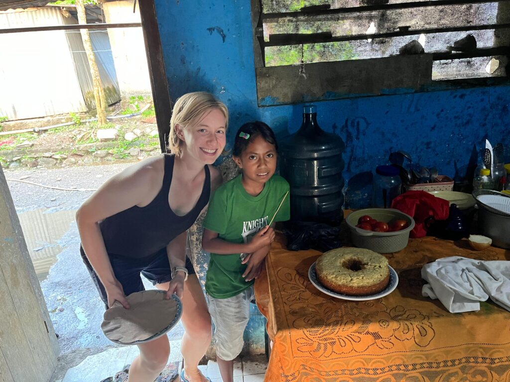 BELOW: Mana Mailys brought her famous banana bread recipe to Timor-Leste ๐. Mana Berta has a small toaster oven she makes bread in and Mailys used that to bake with. My host sister, Mana Cidalia, was eager to help and mixed all the ingredients together nicely. When the cake was baked it was pretty good!! And it was eaten rapidly by the family. Hopefully I can repeat the process for Christmas or New Year.๐.